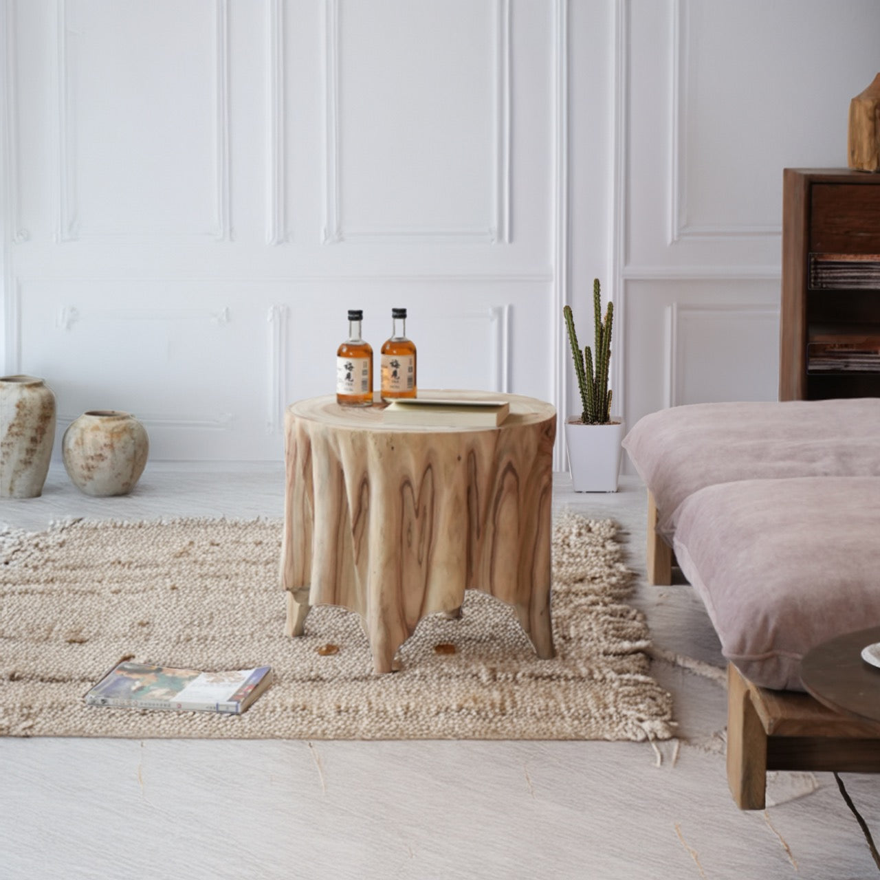 Premium Pine: This side table is made from a single piece of solid, unjoined pine, showcasing the wood's inherent beauty and strength. Pine's natural grain patterns and warm tones bring serenity and charm to your living space.